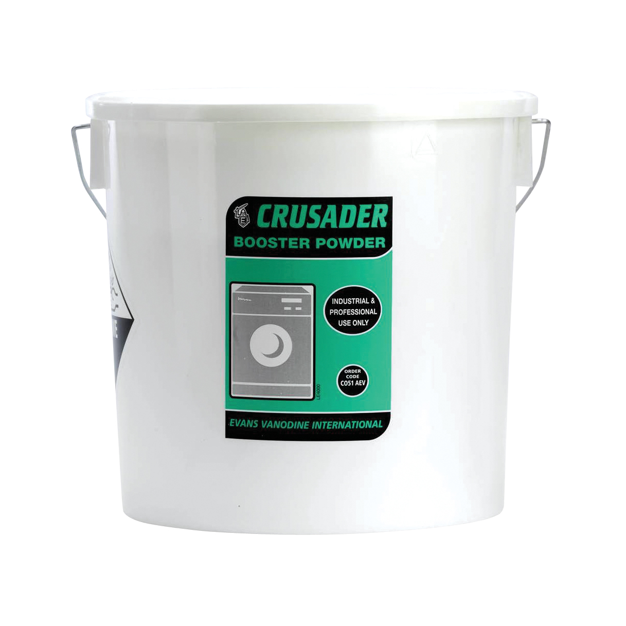 Evans Crusader Booster Powder is a powerful alkaline powder for use in ‘on premise’ laundry applications in hotels and healthcare establishments. It may be used alone in pre-soak or pre-wash stages or in conjunction with Crusader Laundry Liquid in the main wash phase of the laundry programme. Effective on cotton, linen and polyester cotton.