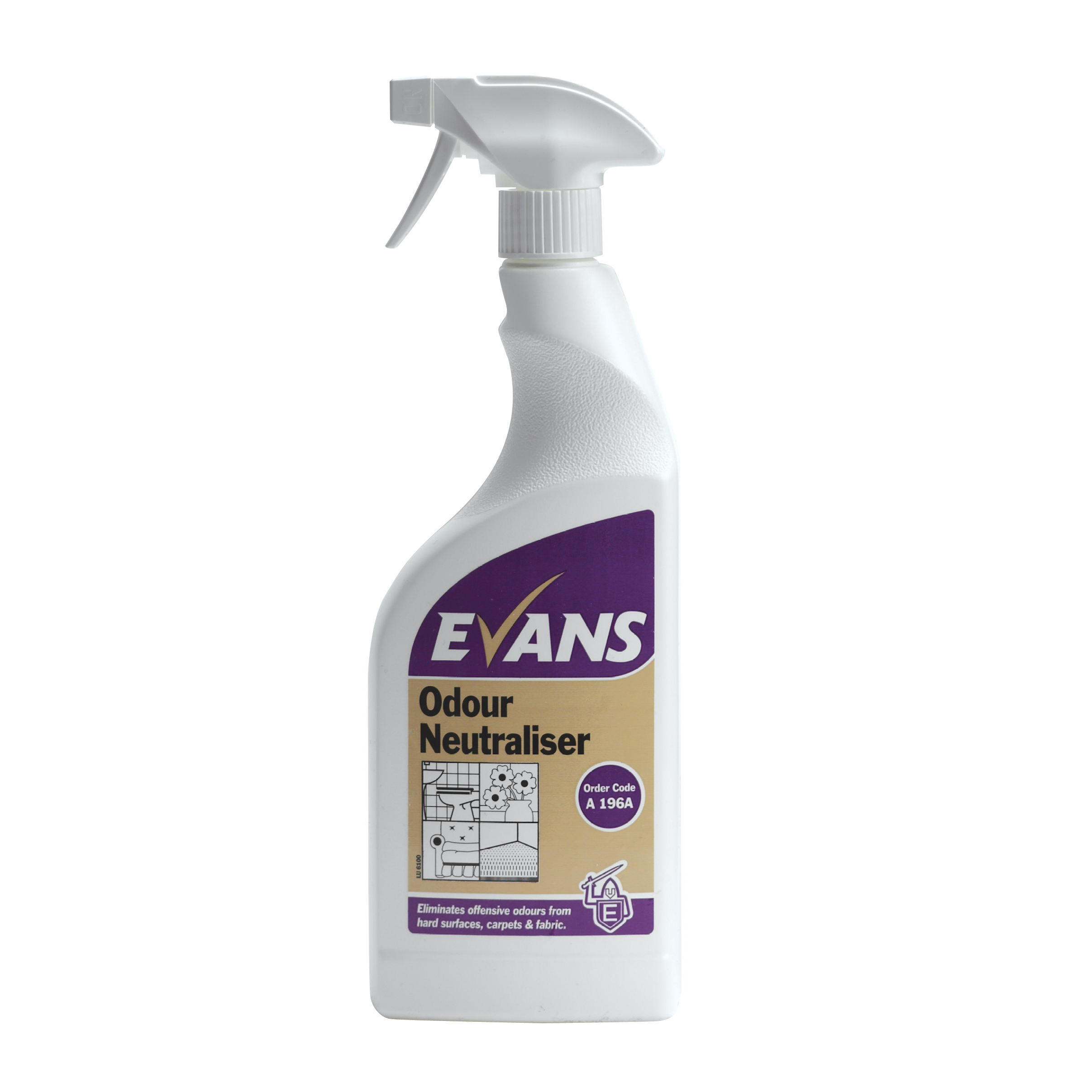 Evans Odour Neutraliser is a highly effective and quick acting odour neutraliser and deodoriser with a bacterial effect. Will eliminate offensive malodours including urine, vomit, smoke, perspiration, rancid food and pet odours, with the added benefit of killing a range of bacteria. For use on hard surfaces, carpets and fabrics and within dustbins.