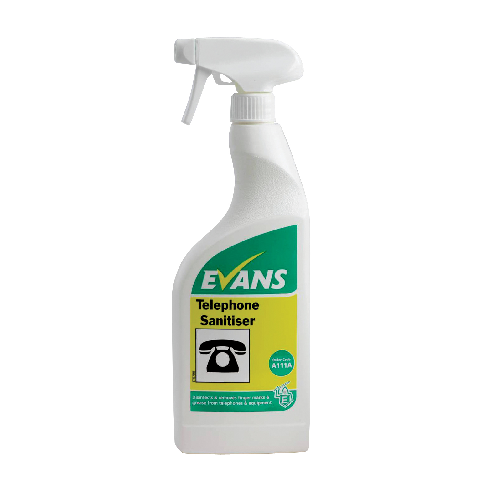 Evans Telephone Sanitiser is a highly efficient ready to use sanitiser for cleaning and disinfecting telephones, handsets, keyboards and the computer mouse. Will quickly wipe off finger marks and grease, kill bacteria and leave a clean fresh fragrance.