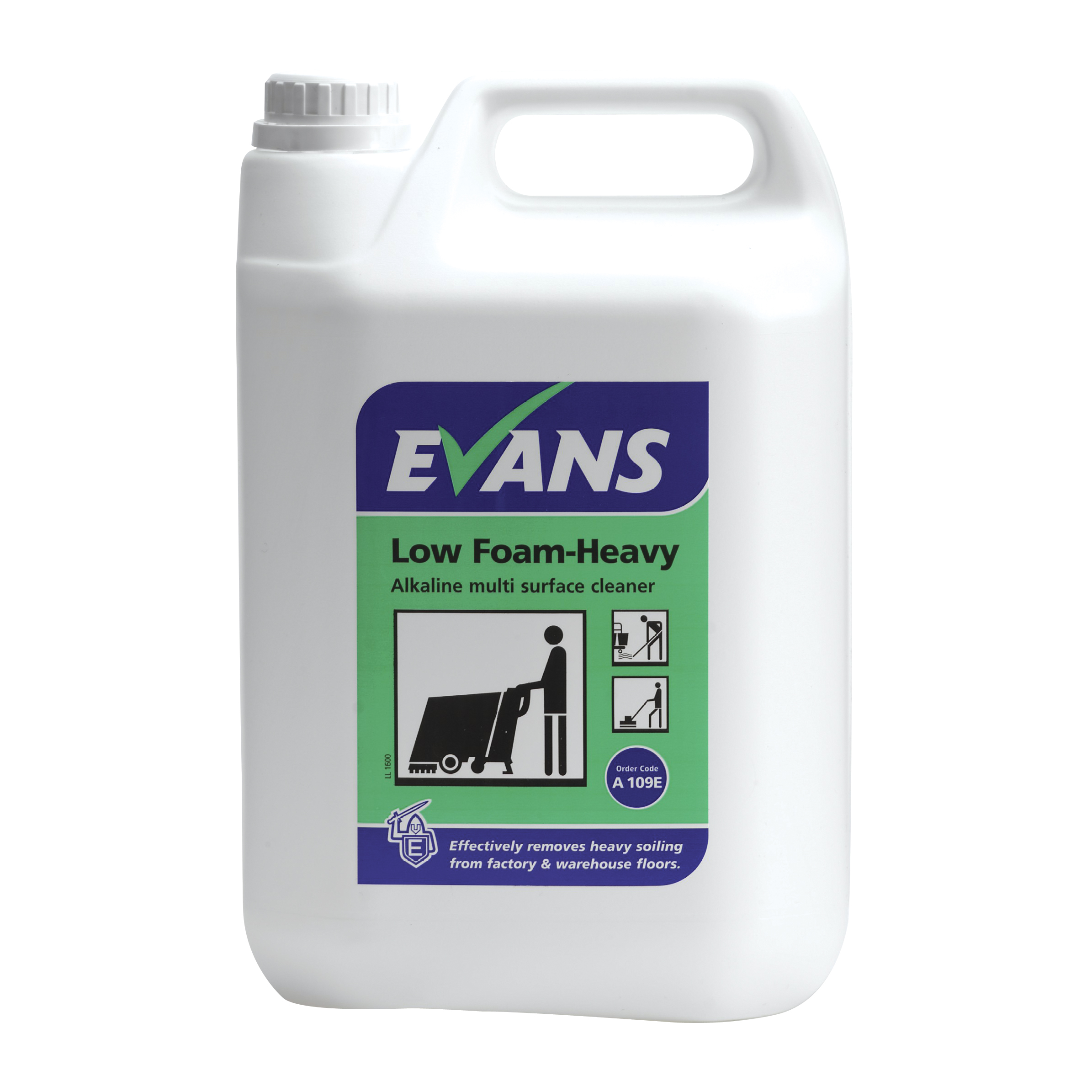 Evans Low Foam Heavy is a heavy duty low foaming alkaline cleaner, for use in a combination scrubber dryer floor machine. Suitable for cleaning a variety of floor surfaces, including vinyl, rubber, asphalt, concrete and unpolished surfaces. Also recommended for the general mopping of badly soiled surfaces.