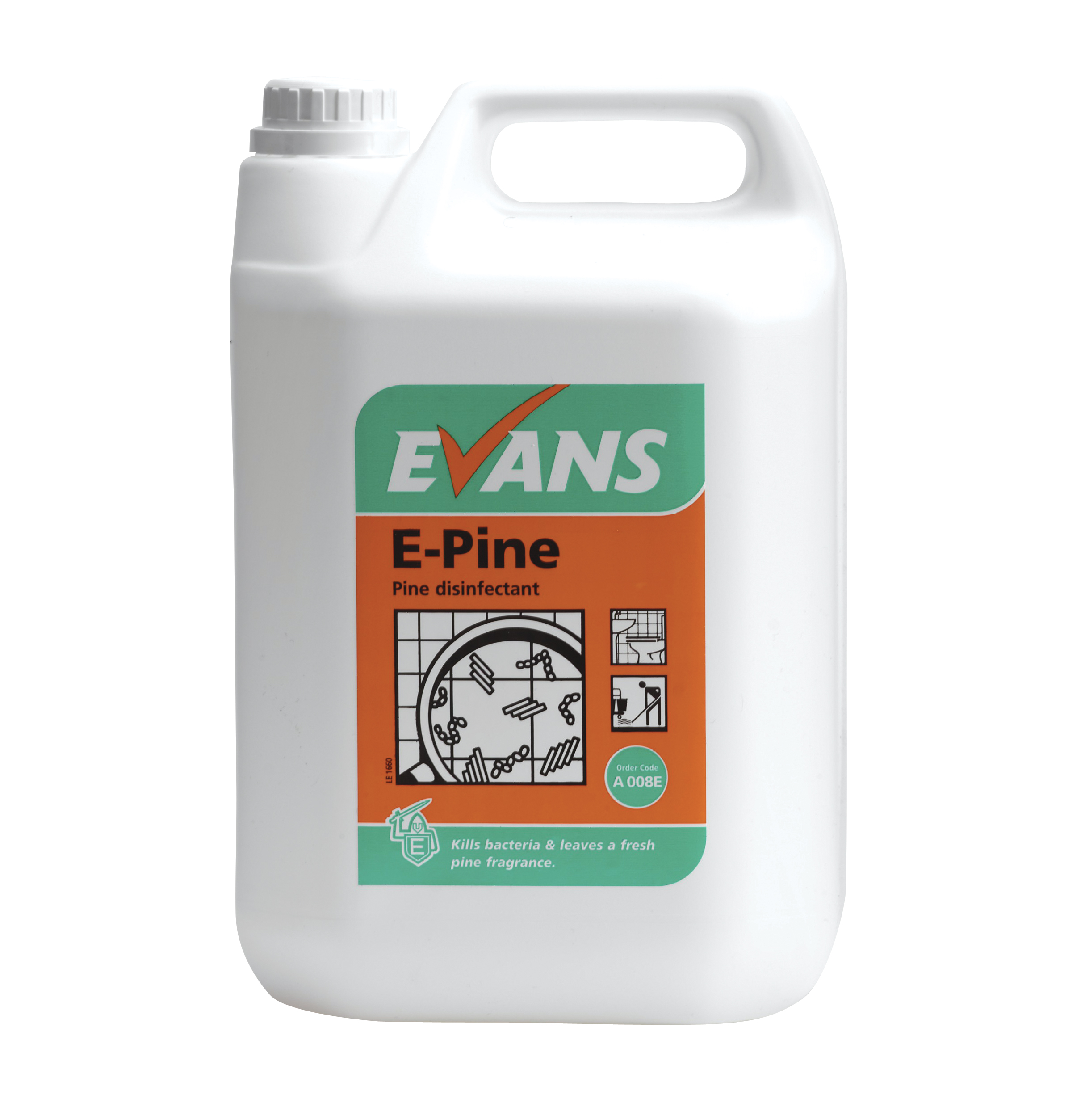 Evans E-Pine is a highly perfumed general purpose disinfectant with a clean, fresh, long lasting, pine fragrance. Suitable for use on most floors, toilets, sinks and drains.