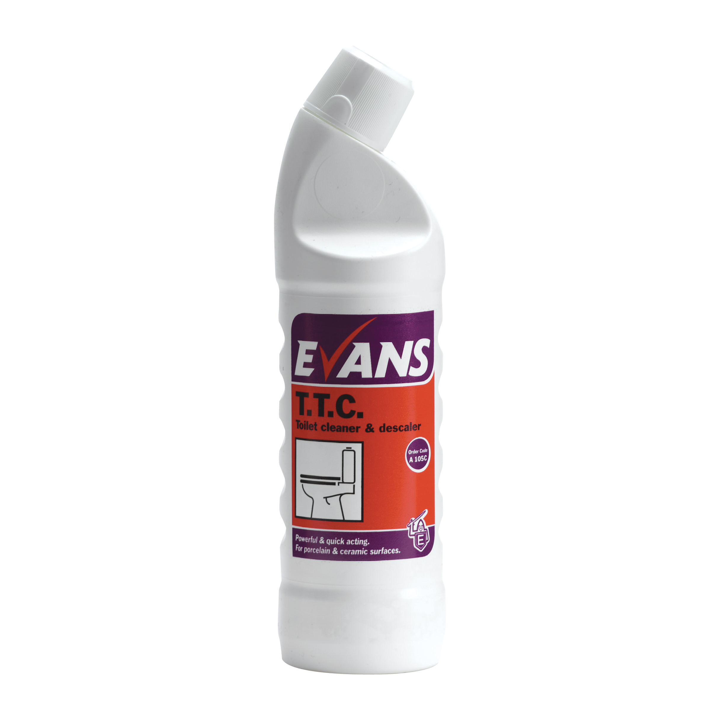 Evans T.T.C. is a powerful, heavy duty, thickened toilet cleaner and descaler with a pleasant perfume, which rapidly removes the heaviest soiling and limescale. Suitable for use on all porcelain toilets and urinals, ceramic and quarry tiles.